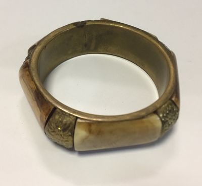 120-9/ Браслет, слоновая кость-латунь