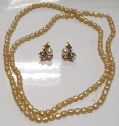 368-5/ Набор. Бусы(жемчуг), серьги(жемчуг+стразы)